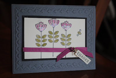 For the technique on this card, we embossed it black and then use the Aqua Painter and water colored the flower and bee. Super cute, eh?