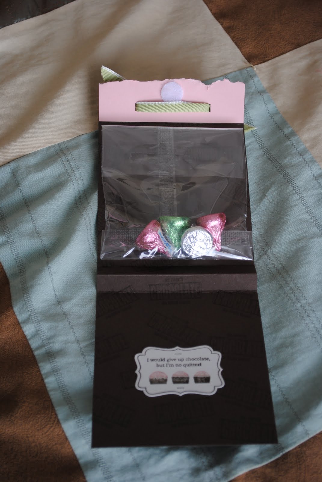 It says, “I would give up chocolate, but I’m no quitter” CUTE!