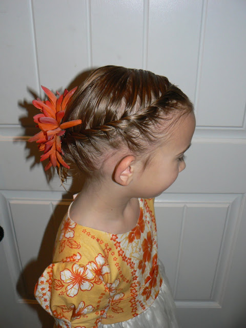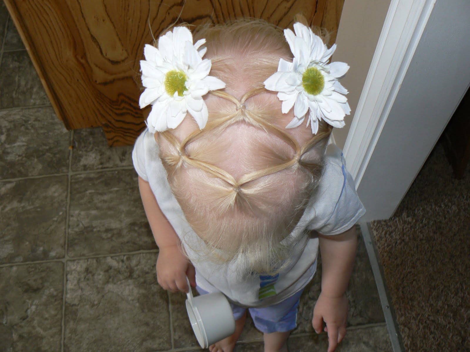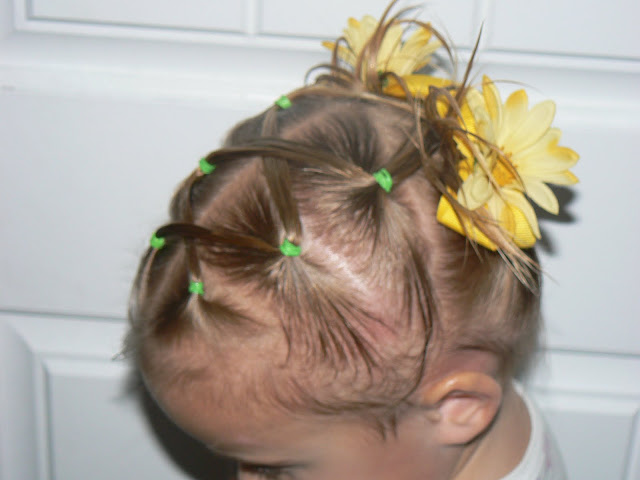 This next hair style is a twist instead of a french braid. Her hair wasn’t long enough for a pony,