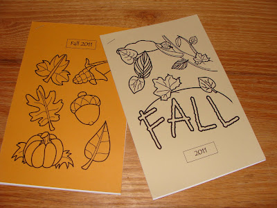 For the cover, I just got online and found Fall coloring pages (these came from www.crayola.com)