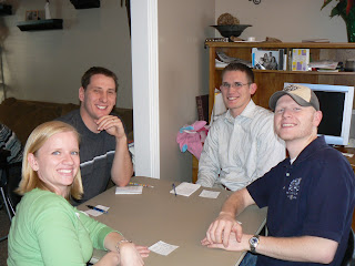 Next, we send the kids downstairs to play and the adults get to play Bunco.