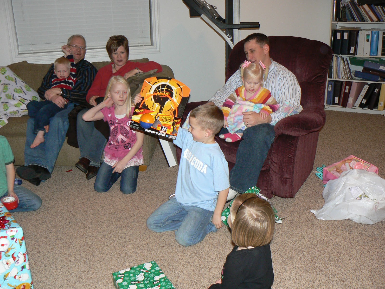 After dinner we have a “gift exchange”. We start from the youngest and go clear up to grandma and grandpa!