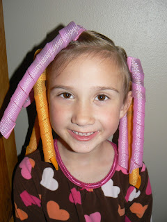 These curlers are quite a bit longer than her hair and I was surprised that they still stay in!