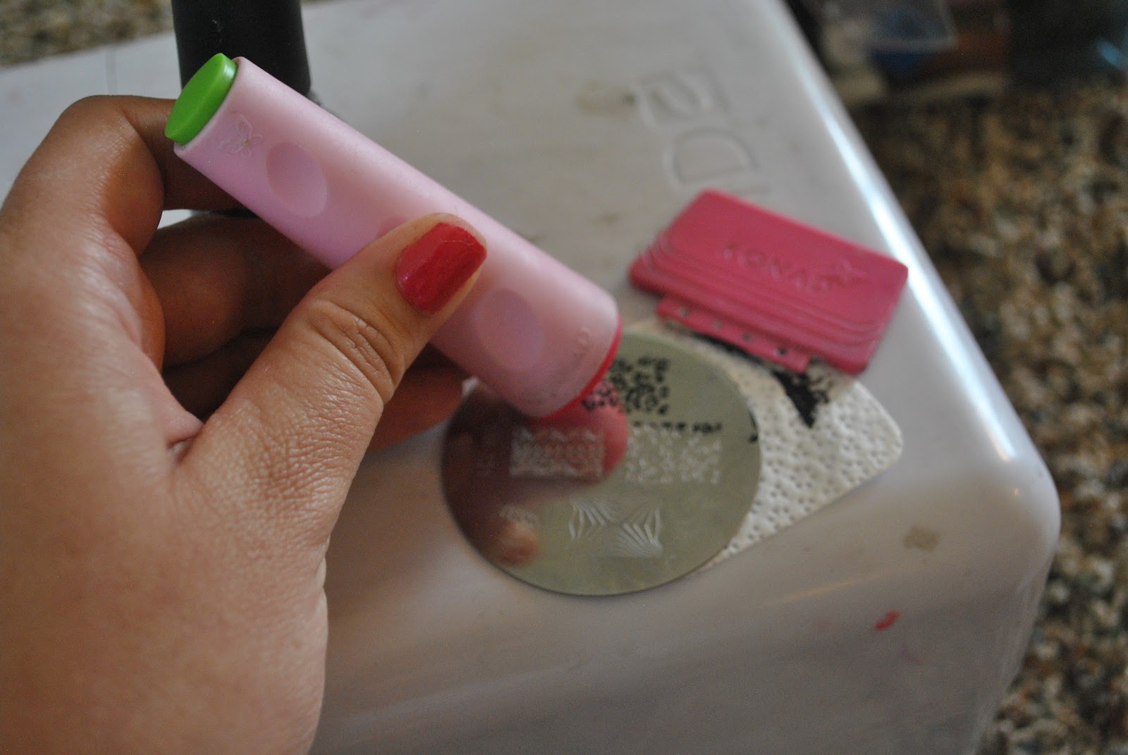 I wanted to do a quick tutorial on how I apply them. NOTE: For the best results–purchase the “Konad Special Paint” in order to properly apply these. This paint is made for these plates and dries instantly.
