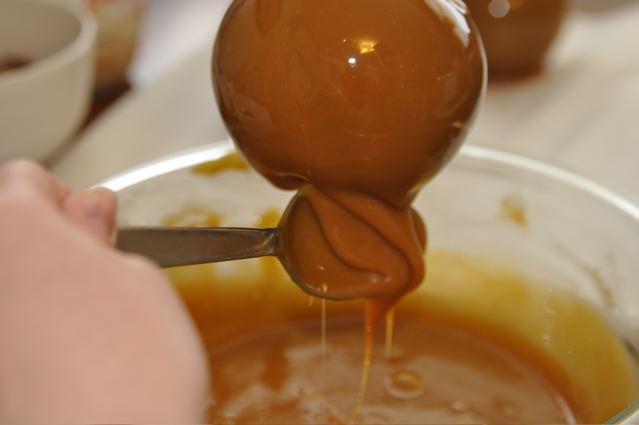 We added 4 tablespoons of water and melted the caramel in the microwave for 4 minutes, stirring after each minute.