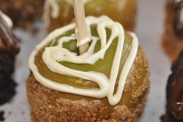 For our Apple Pie Apple, we iced the carameled apple with the cinnamon butter and then rolled it in the brown sugar mixture.