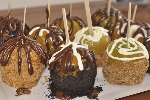 We learned that the sticks go in much easier if you pierce the apples with a knife first.