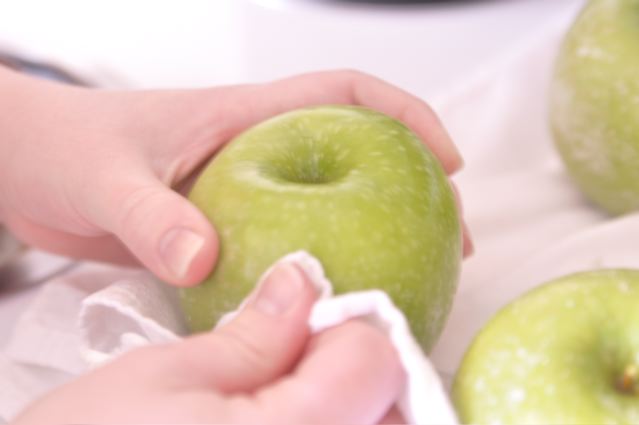 I started to panic that I had ruined the apples – but we quickly realized that all you need to do is just wipe them clean with a towel.
