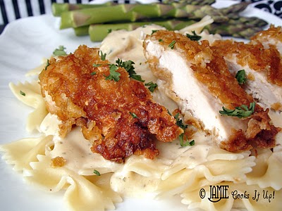 Last week was my birthday, and my husband offered to cook me dinner. What menu did I choose? Yup – Crispy Chicken and Bowtie Pasta.