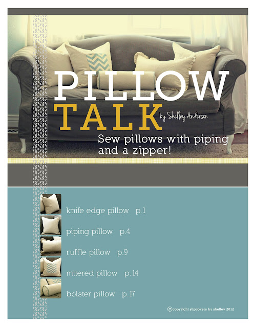 I have a new friend.  She is Shelley from Custom Slipcovers by Shelley.  It is so fun that I get to run into her almost every week, where we get to chat and catch up.  She is very talented and creative.  I was so excited when she was interested in having me review her new Pillow Talk e-book.  I’ve been needing to make some cute pillows for my front porch, so this was the perfect motivation to get it done!!