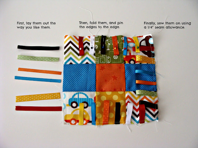 Fold the ribbons in half, pin them, and then sew them on using a 1/4″ seam.