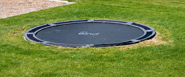 This vented trampoline pad is amazing. It is made for trampolines that are installed under ground. They are easy to connect to the frame and springs with simple ties instead of having to go around your outside frame that is mostly in the ground. There are holes along the pad that let the air out from under the trampoline when you jump – so no more flapping and slapping! I also love the look of these vented pads. Very nice and classy.
