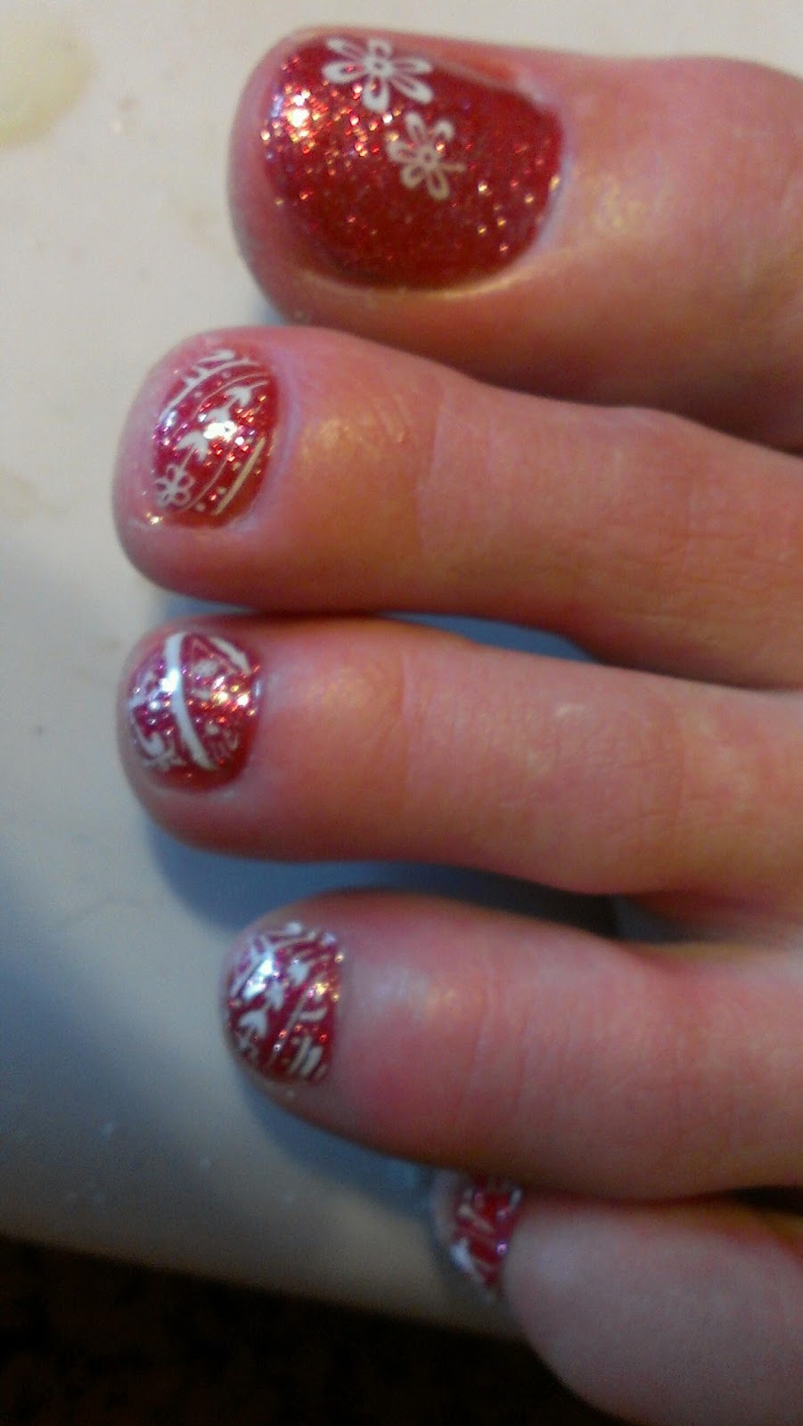 Here is how I did the picture to the left: Gelish Colors: Caution, Red Roses, and Showstopper. I painted on the Sheek White with these new fun dotting tools I purchased on Amazon. These are so fun!