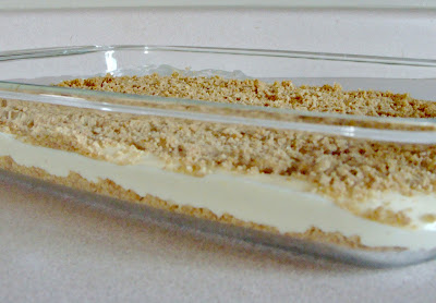 Crush Graham Crackers. Combine with sugar and melted butter. Reserve ¼ cup crumbs for later. Press the rest into a 9×13 pan.